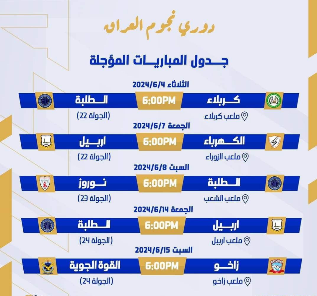 Share Facebook Twitter LinkedIn Pinterest Email بغداد/نينا/ حددت لجنة المسابقات في اتحاد الكرة، مواعيد المباريات المؤجلة في دوري نجوم العراق./انتهى8 Source link