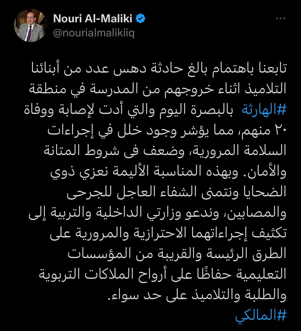 Share Facebook Twitter LinkedIn Pinterest Email بغداد / نينا/ قدم رئيس ائتلاف دولة القانون نوري المالكي التعزية لذوي ضحايا حادثة الدهس الذي وقع في الهارثة بالبصرة. وقال المالكي في منشور على موقع أكس :” تابعنا باهتمام بالغ حادثة دهس Source link