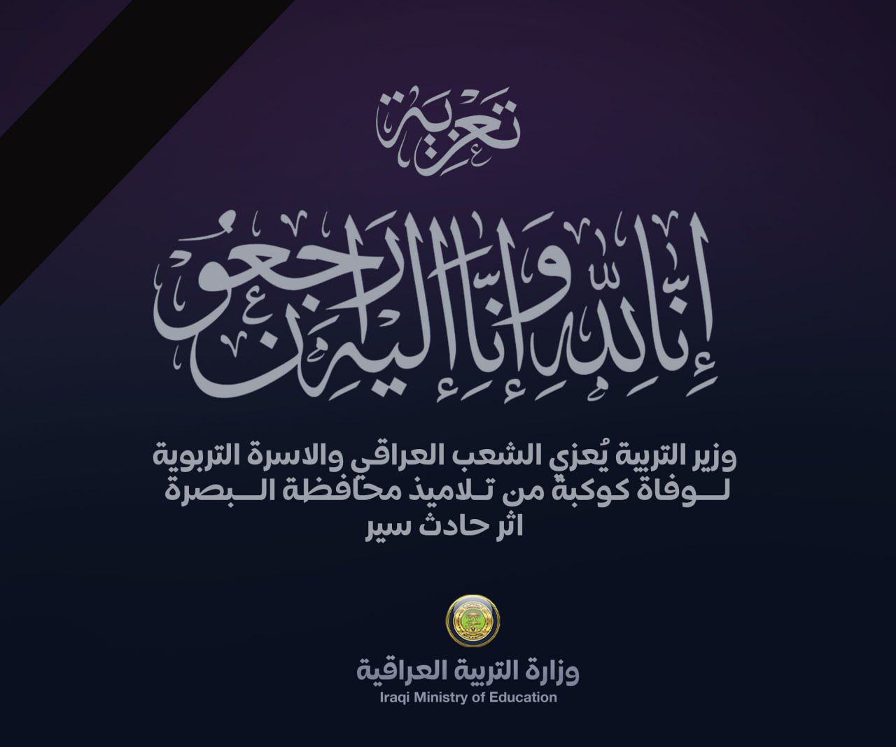 Share Facebook Twitter LinkedIn Pinterest Email بغداد / نينا/ اعلنت وزارة التربية الحداد ترحما على ارواح تلاميذ محافظة البصرة الذين تعرضوا الى حادثة دهس اودت بحياة ستة منهم وجرح (١٠) آخرين اصابات البعض منهم بليغة . وقدم وزير التربية اب Source link