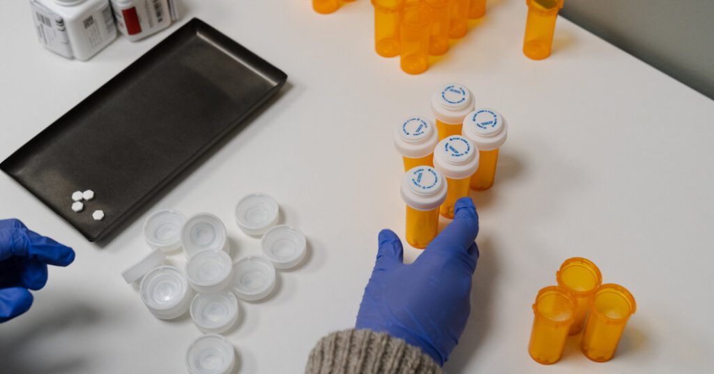 At a plain white table, Carol, who has a master’s degree in public health, began her routine: checking a spreadsheet of prescriptions; printing out labels with medication information and patients’ names; printing address labels with tracking numbers and adding them to the spreadsheet.