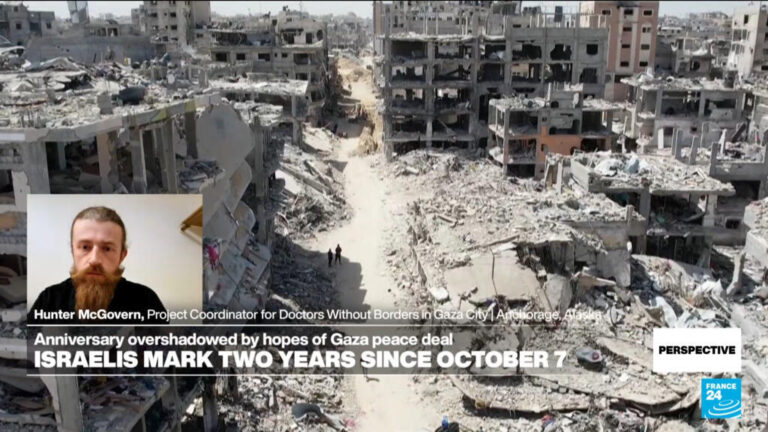 An aid worker who has just returned from Gaza City has spoken to FRANCE 24 about the latest situation there. Hunter McGovern from Doctors Without Borders left when the NGO was forced to abandon its work due to the encroaching Israeli forces. He says there was an “absolute breakdown” as they pulled out, and that for the people who live there, no 10 minutes went by without the noise of either the destruction of buildings or drone strikes. He spoke to us in Perspective.