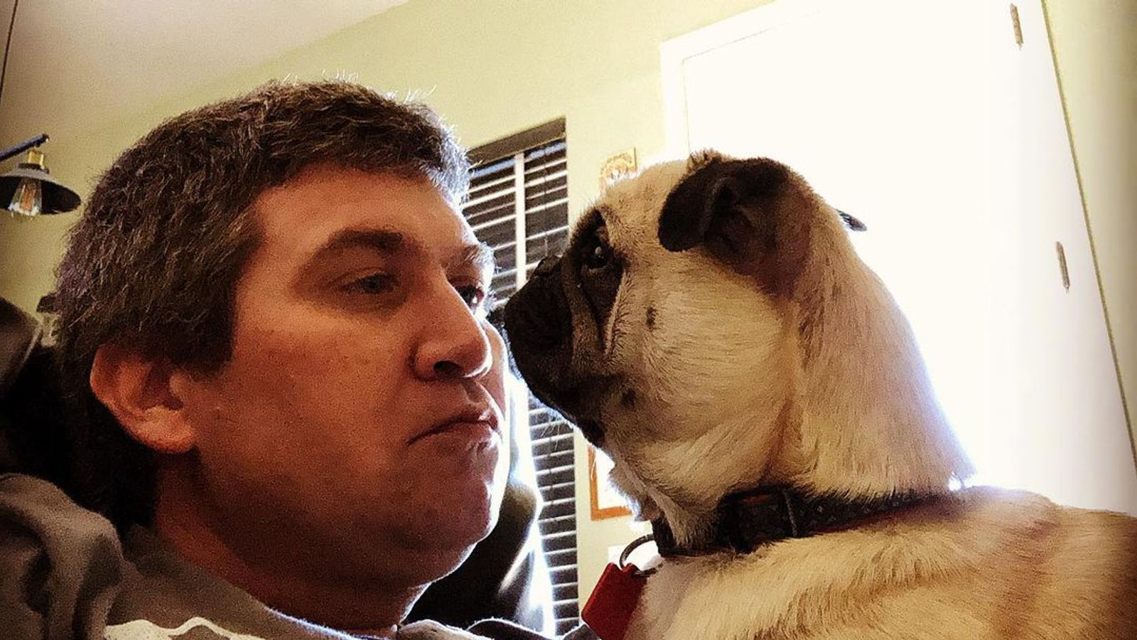 His sister, Rebecca Pfaffinger, said in a social media post he was found dead in his car alongside his assistance dog last month.