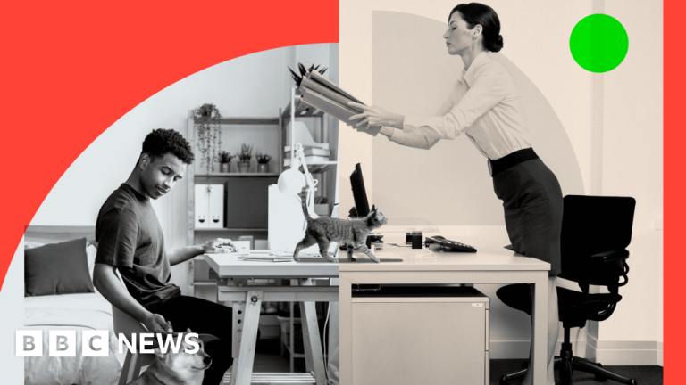 BBCThey are two competing views on where desk-based employees work best.
