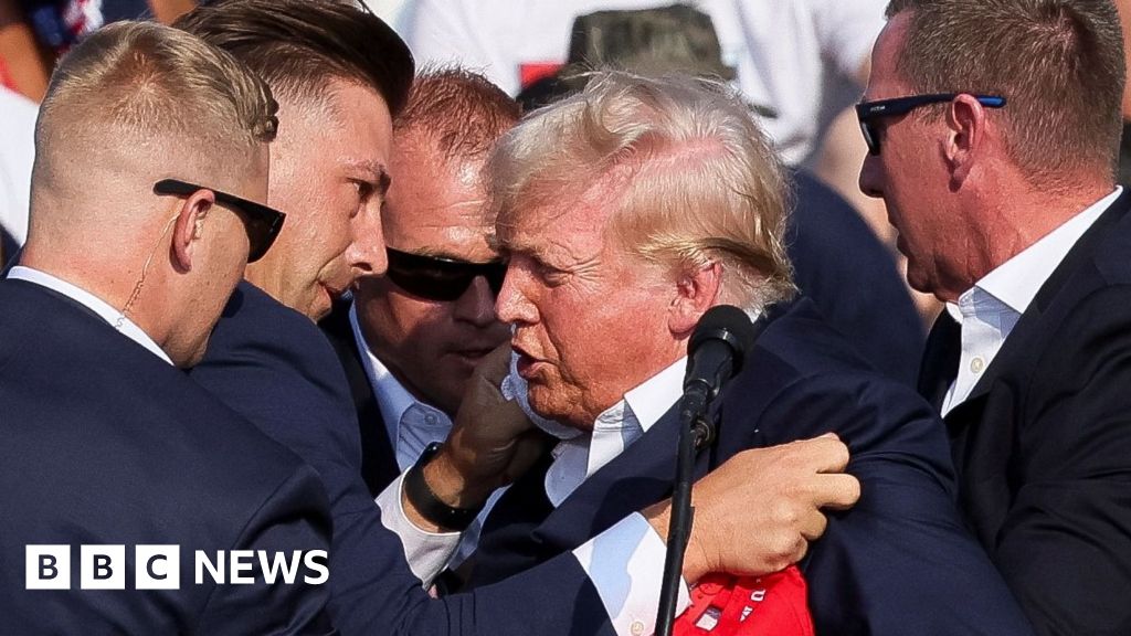 ReutersThe flinch was instinctive as the first crack sounded around Butler’s showgrounds. Donald Trump’s hand darted to his ear as more cracks came in. Screams welled up from the crowd as he ducked, and as Secret Service agents buried him in the mass of their bodies.