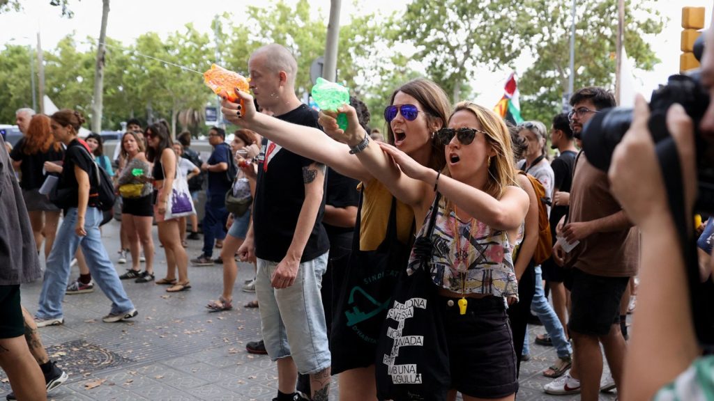 Protesters have targeted tourists with water guns in Barcelona as part of mass demonstrations over the number of visitors to the Spanish city.