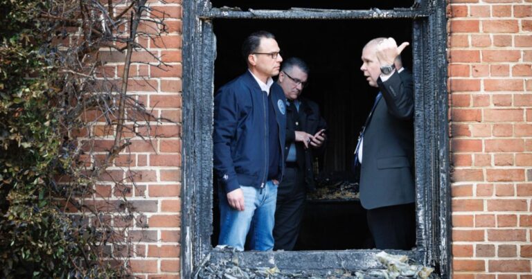 Sunday’s security breach at Shapiro’s residence occurred while the family and other guests were asleep. According to a probable cause affidavit, Balmer scaled a perimeter fence, then used a hammer to smash through a window where he threw a homemade incendiary device made out of a beer bottle into a first-floor room, setting off a “substantial fire.” He then smashed a window of an adjacent room, entered and deployed a second device, according to the affidavit, before exiting the residence and fleeing.