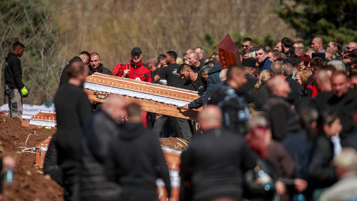 Updated: 21/03/2025 – 10:16 GMT+1Mourners across North Macedonia attended funerals for 59 nightclub fire victims, including members of the pop band DNA, as communities held solemn ceremonies to honour their lost loved ones. … More Funeral services were held on Thursday across North Macedonia as communities mourned the victims of last weekend’s nightclub fire. The March 16 blaze in the eastern town of Kocani claimed 59 lives, including several members of the pop band DNA.In Kocani, where 43 victims were laid to rest, hundreds of black-clad mourners carried white flowers and photographs of lost loved ones. A solemn religious service,…