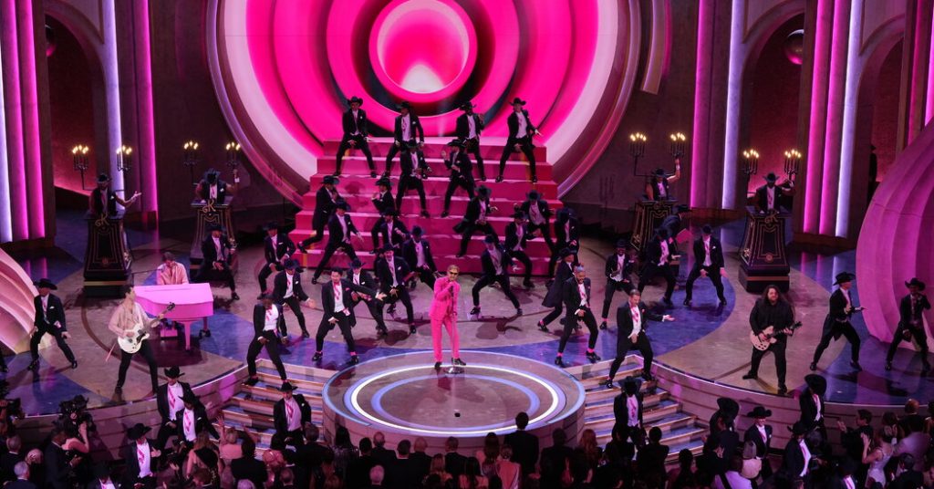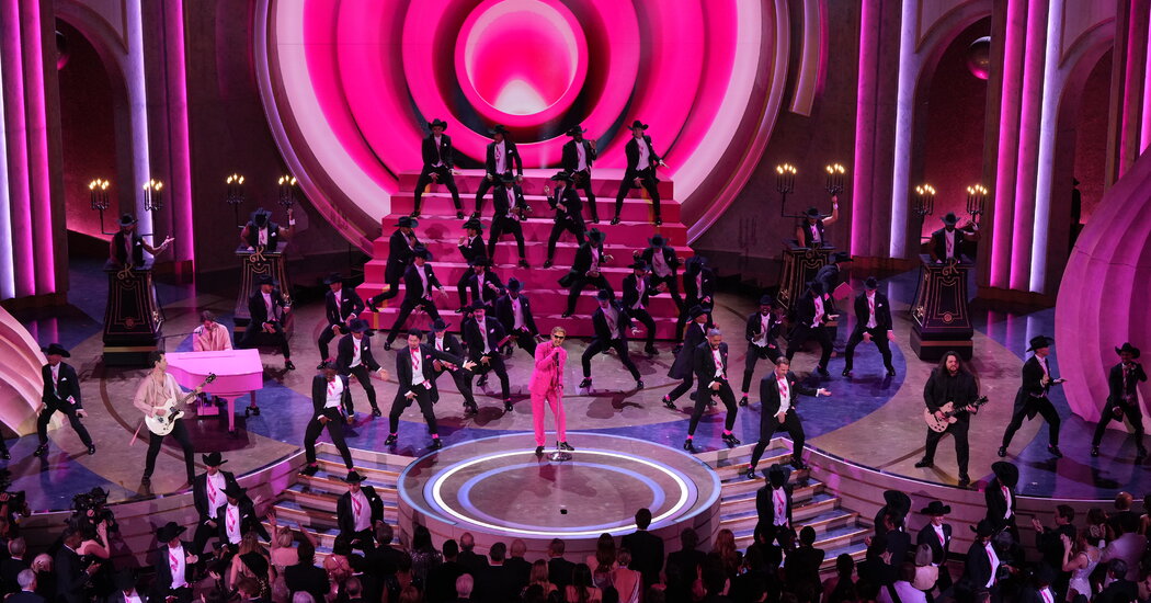 At Sunday’s Oscars, Billie Eilish sang her pop ballad “What Am I Made For?” and Ryan Gosling delivered a cheeky yet dedicated performance of “I’m Just Ken.” The choreography, which drew on Busby Berkeley films and the Marilyn Monroe musical “Gentlemen Prefer Blondes,” was complemented by a cameo by the thrash-rock guitarist Slash and a bevy of supporting Kens from “Barbie,” including Simu Liu.