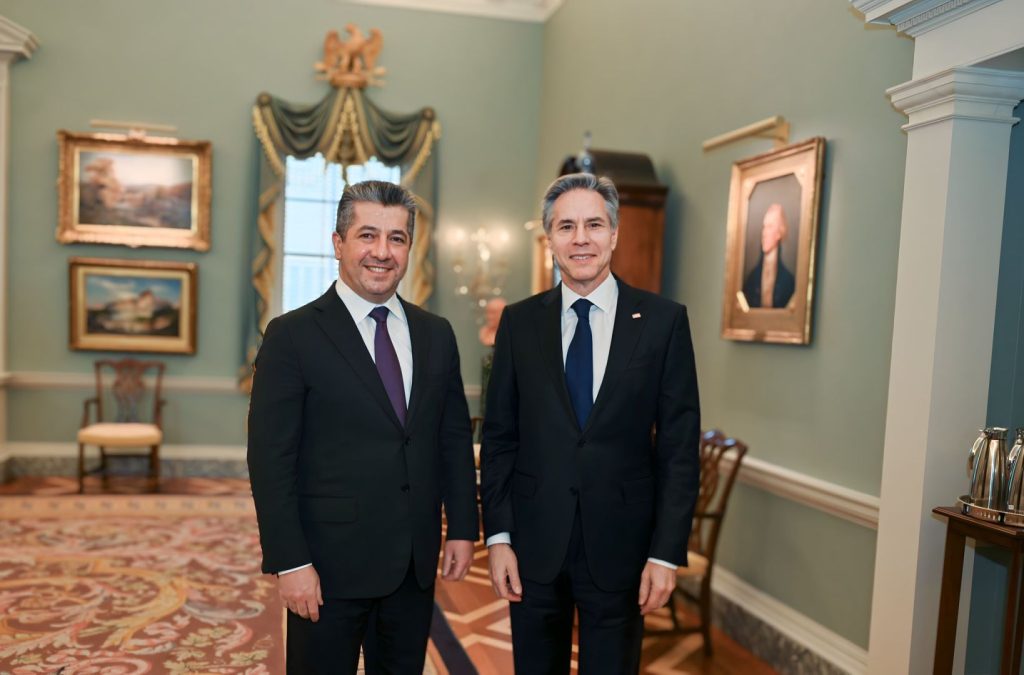 Prime Minister of the Kurdistan Regional Government, Masrour Barzani, met in Washington, DC, today, Monday, February 26, 2024, with US Secretary of State Anthony Blinken. During the friendly meeting, a number of issues of common interest related to strengthening bilateral relations and resolving controversial issues between the Kurdistan Region and the federal government were discussed. At the beginning of the meeting, the Minister of Foreign Affairs praised