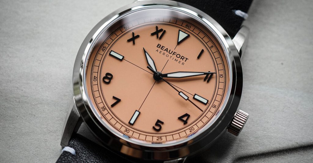 In 2019, Beaufort Watches was born on the crowdfunding platform Kickstarter. Mr. Kwok wanted a name with a historical connection, so he named his company after the Bristol Beaufort, a British torpedo bomber that was used by the New Zealand Air Force in World War II. He noted that he also admired the era’s vintage design aesthetic, so that supported the choice, too.