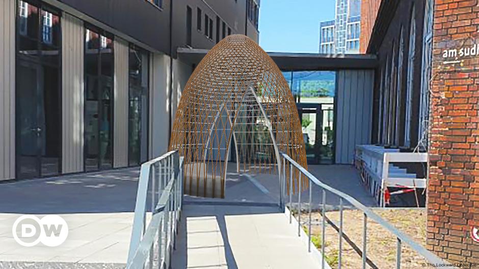 The work of art, titled “EarthNest,” was designed by The Lockward Collective, and is installed in front of the Berlin Global Village, a center in the district of Neukölln that houses around 50 development policy and migrant-diasporic associations and initiatives working on various topics of global justice, sustainability and diversity.