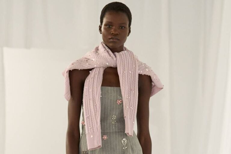 A stone’s throw from the Galeries Lafayette, one of their points of sale, Bernadette unveiled an autumn-winter collection 2025 in which Glamor merges with both evening and daily clothing. Wrap dresses with bare shoulders, glittering sweaters knotted around the neck and voluminous dresses paraded in pastel shades that perfectly matched the pure, completely white setting.