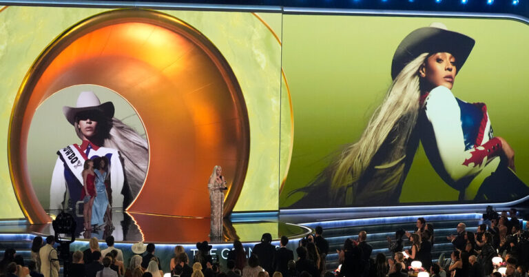 This time, though, she won. And her victory — for “Cowboy Carter,” an album of reimagined American roots music, centered through the lens of Black participation and innovation — was so welcome that even her competitors appeared relieved when her name was announced. Swift, one of the losers, clinked champagne flutes with Jay-Z, Beyoncé’s husband: two people who almost certainly didn’t want to have to navigate a fifth Beyoncé loss.