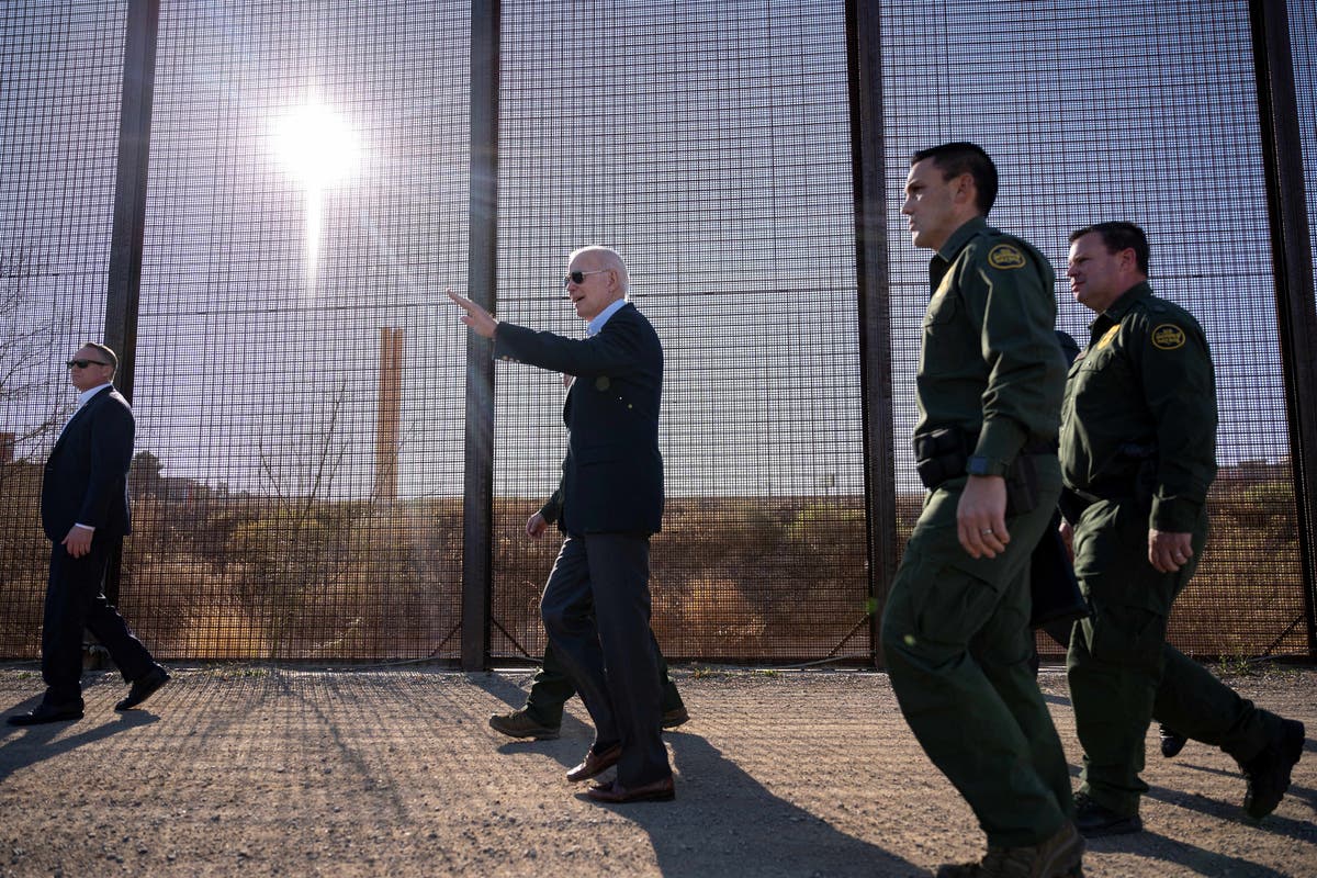 US President Joe Biden walks along the US-Mexico border fence in El Paso, Texas, on January 8, 2023