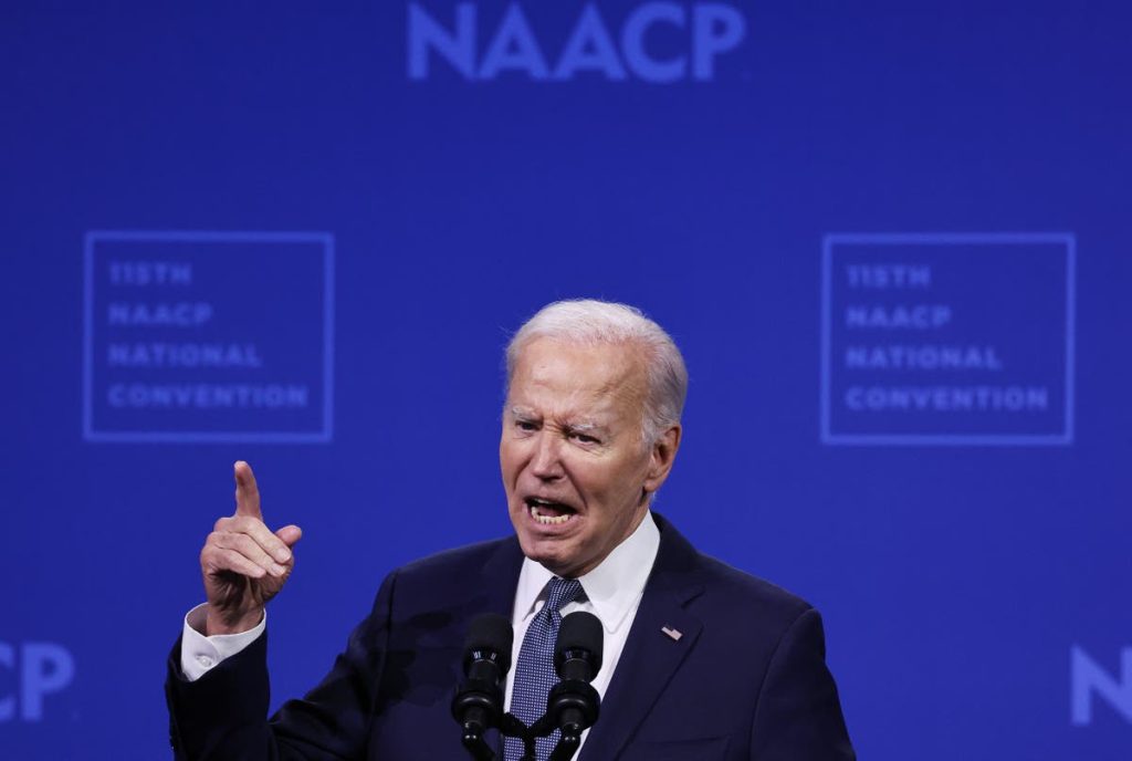 The message in Biden’s address on Tuesday — amid growing calls from voters and Democratic officials to end his re-election campaign — sought to contrast his agenda against Trump’s in front of an influential civil rights group with powerful reach to Black voters.