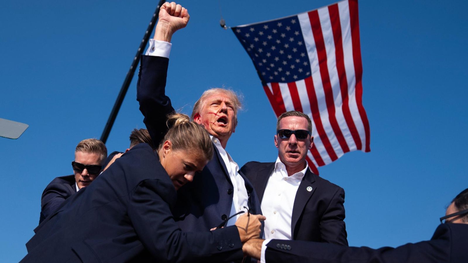 The central punctuation point from the fortnight was the shooting. That moment just after 6pm last Saturday when phones would have pinged with push alerts worldwide: “Shots fired at Trump Rally”.