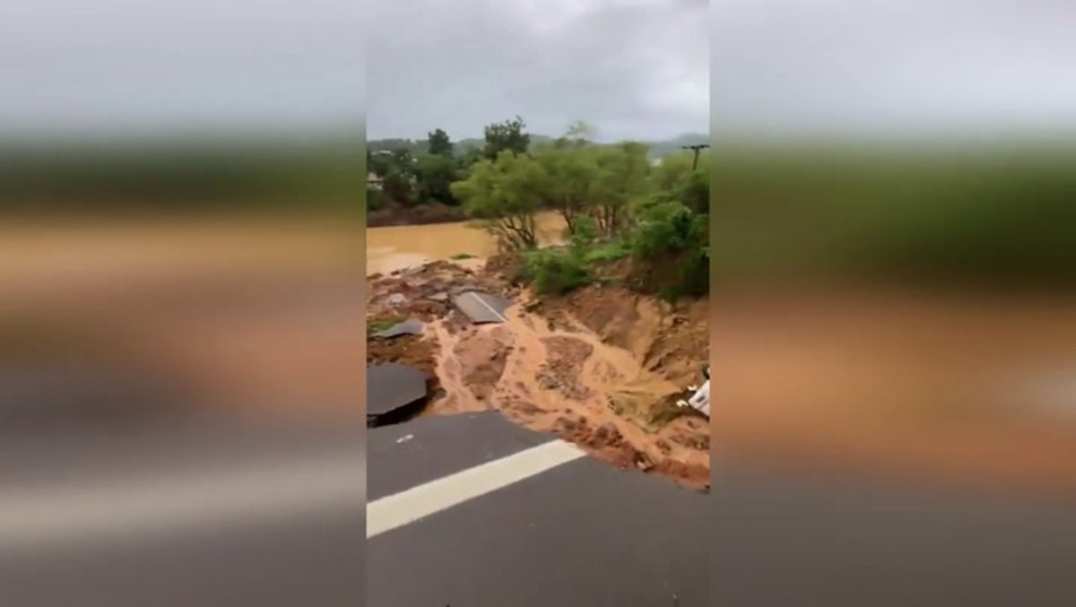 A car was dragged into a sinkhole after a road collapsed into a river in Brazil during heavy rain on Wednesday, 14 February.