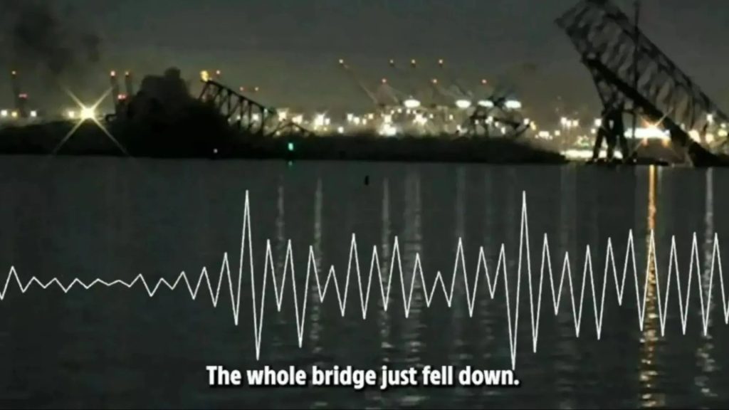 About 90 seconds after the cargo ship’s mayday call, one cop is heard on the audio reporting the bridge has collapsed.