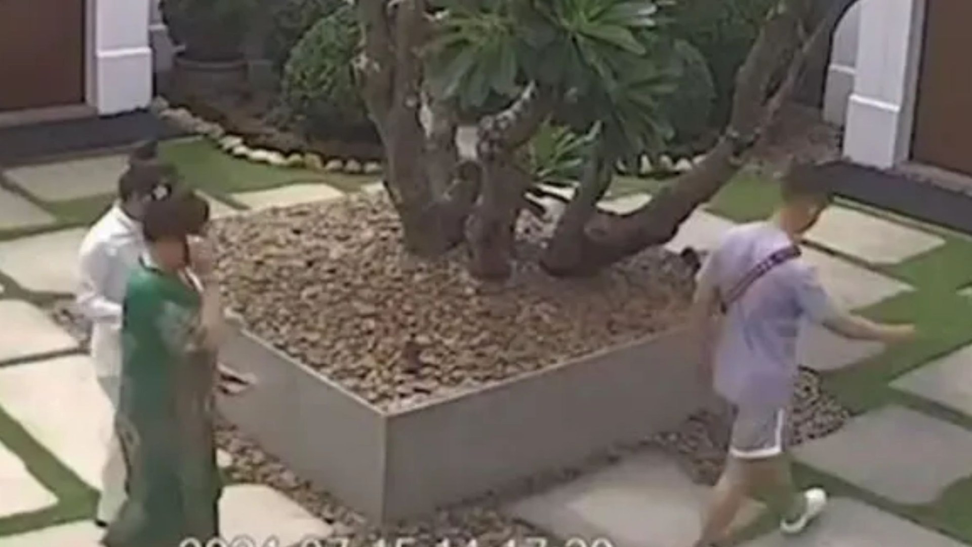 The clip, shared in Vietnamese media, shows the men and women heading through a garden at the hotel.