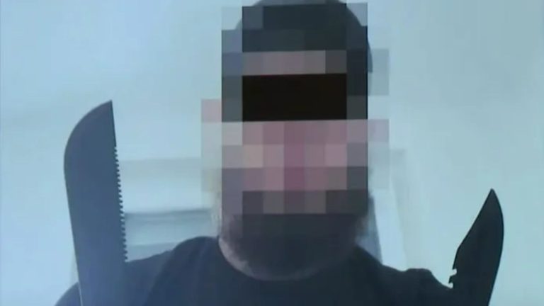 A picture has now emerged of Beran A. holding up two huge zombie knives with his arms crossed over.