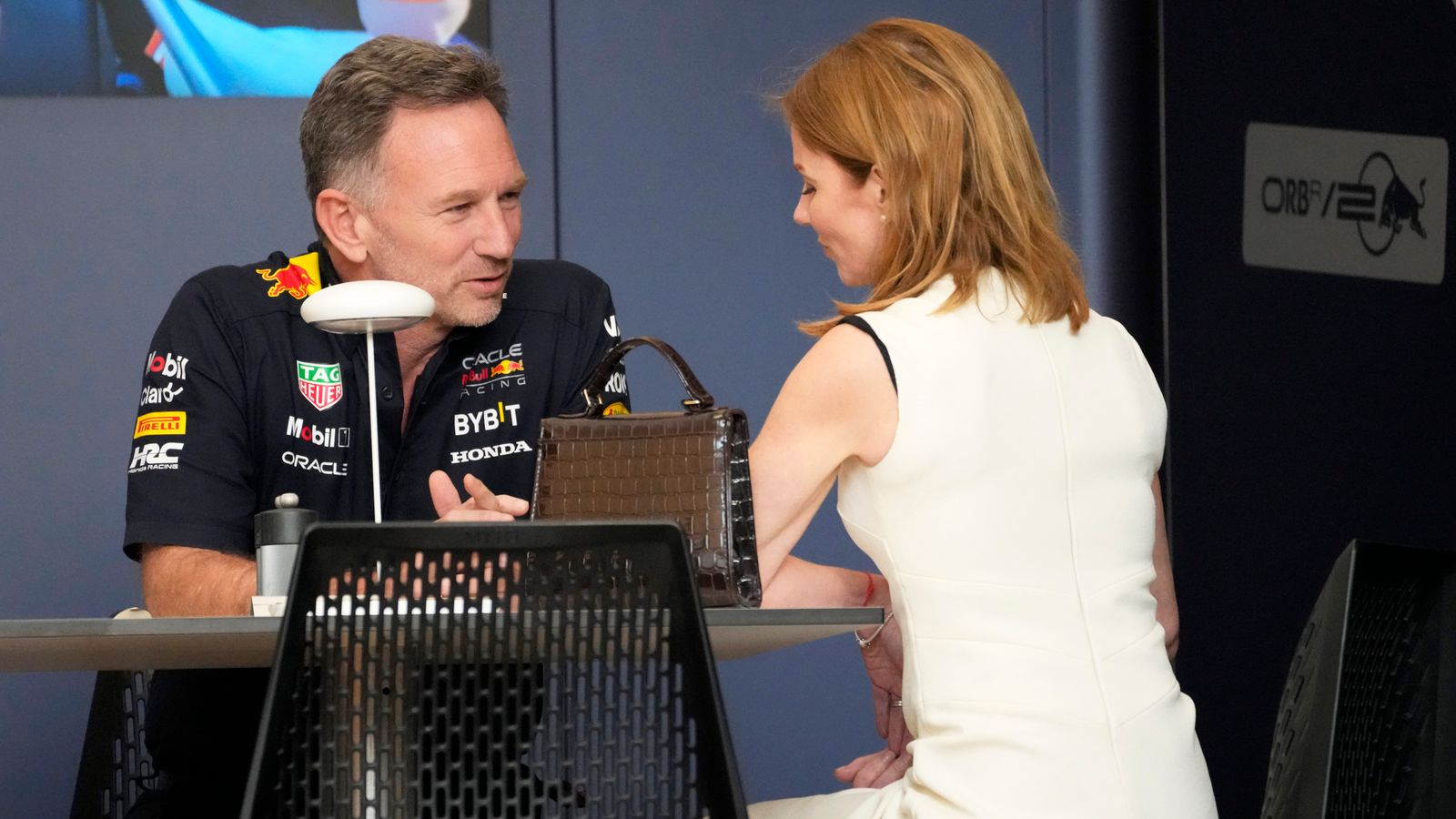 The 50-year-old watched the podium ceremony with his wife, former Spice Girl Geri Horner, after hundreds of WhatsApp messages reported to have been part of Red Bull’s recent probe were leaked.