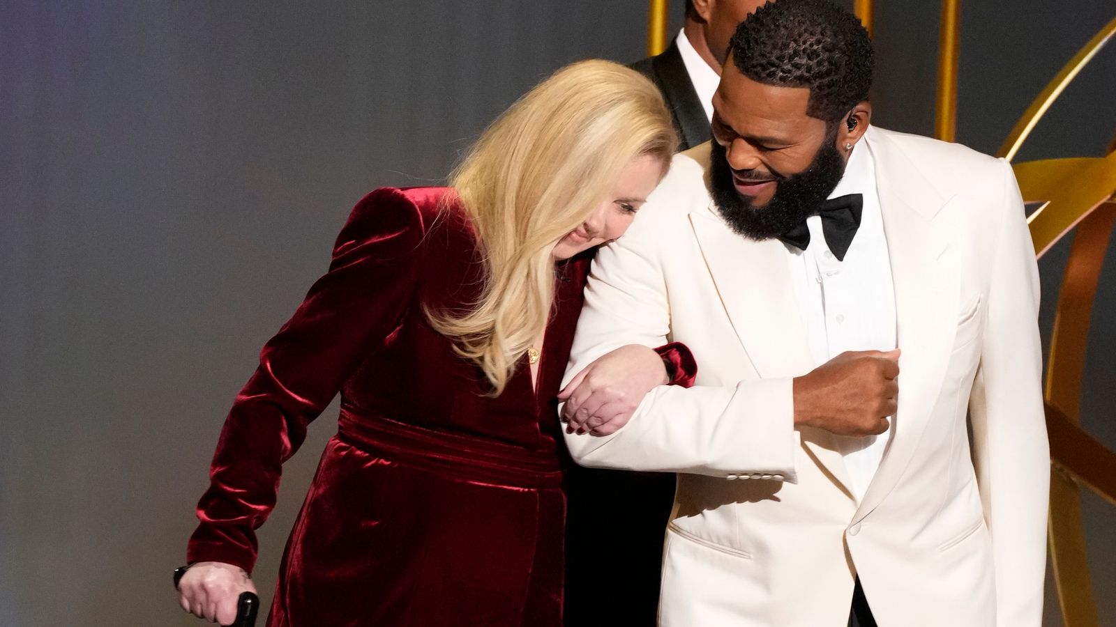 The interview follows Applegate’s surprise appearance at January’s Emmy Awards, when she received a standing ovation after entering the stage using a cane.