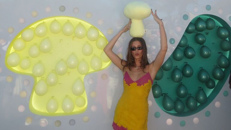 At Coachella weekend one, brands were out in force. Justin Bieber’s Skylrk hosted a ‘Skylrk Oasis’ on the festival grounds, which will continue into weekend two (it’s Bieberchella, after all). Gap, Coachella’s exclusive clothing apparel sponsor and official merch partner, sold hoodies at its ‘Hoodie House’, also on the festival grounds. Off-site, Rhode hosted Rhode World, its first Coachella compound, alongside desert regulars including Revolve, Poosh, Guess, 818, and more.