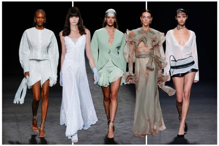 In general, the aesthetic language of the emerging designers on Sunday’s ego catwalk contrasts with the more modest and conservative interpretations that could be seen on the catwalk. This reflects a general course of fashion in a time when restraint and austerity gain ground.