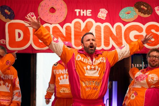 Fans race to snag neon-orange and pink DunKings tracksuits after the now-viral Super Bowl ad, sparking eBay bidding wars.