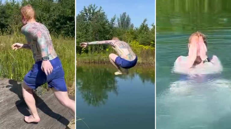 Ed Sheeran has reignited controversy around a “wildlife pond” he built in the garden of his Suffolk mansion, after sharing a video showing him bombing into the water in his swimming trunks after taking a run and sauna.