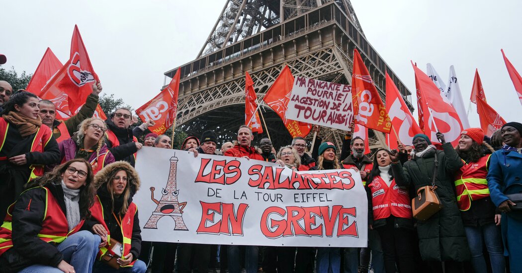 The unions had walked out over similar grievances in December, on the 100th anniversary of the death of Gustave Eiffel, the civil engineer whose company designed and built the monument. On Thursday, one of the union members’ signs referred to him, reading: “Town Hall is stuffing itself. Sorry, Gustave.” (It rhymes in French.)