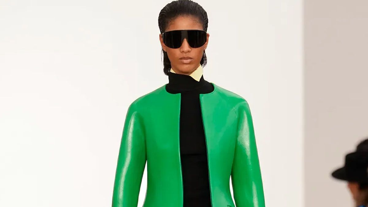 It was a bold, bright, electric debut for Jack and Laz at Loewe. There were strong strains of the silhouettes we’ve always loved from them at Proenza: asymmetrical hemlines, rounded shoulders, but a sharp injection of Loewe with saturated, splashy Spanish flair. It felt like a collection to wear for all weather, with brimmed rain hats, slick windbreakers and PVC-heeled pointy-toe clompers. The slouchy, boxy bag that was a hero accessory on the runway feels like a runaway hit to me.