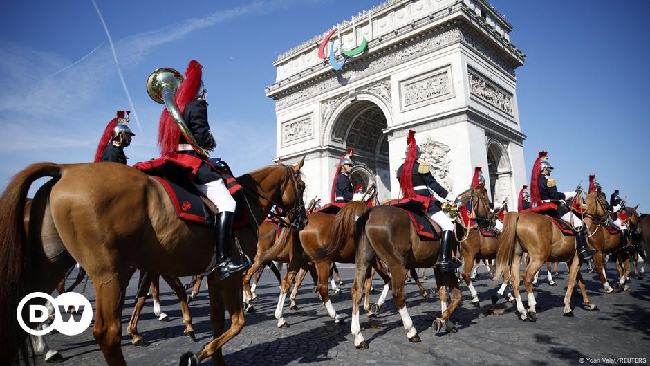 France celebrates its national holiday, Bastille Day, on Sunday as the country prepares to host the Olympic Games. President Emmanuel Macron opened the traditional military parade by reviewing the troops, followed by the Marseillaise, the national anthem.