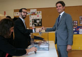 Pictured: French prime minister Gabriel Attal casts his ballot