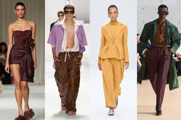 From the warmth of rust brown to the calmness of peaceful lilac, with a touch of optimistic corn yellow and earthen deep green: the AW27/28 color palette of WGSN is already visible on the catwalks. Discover below how the four trend colors for autumn/winter 2027/2028, selected by WGSN and Coloro, have already been reflected in the international catwalks.