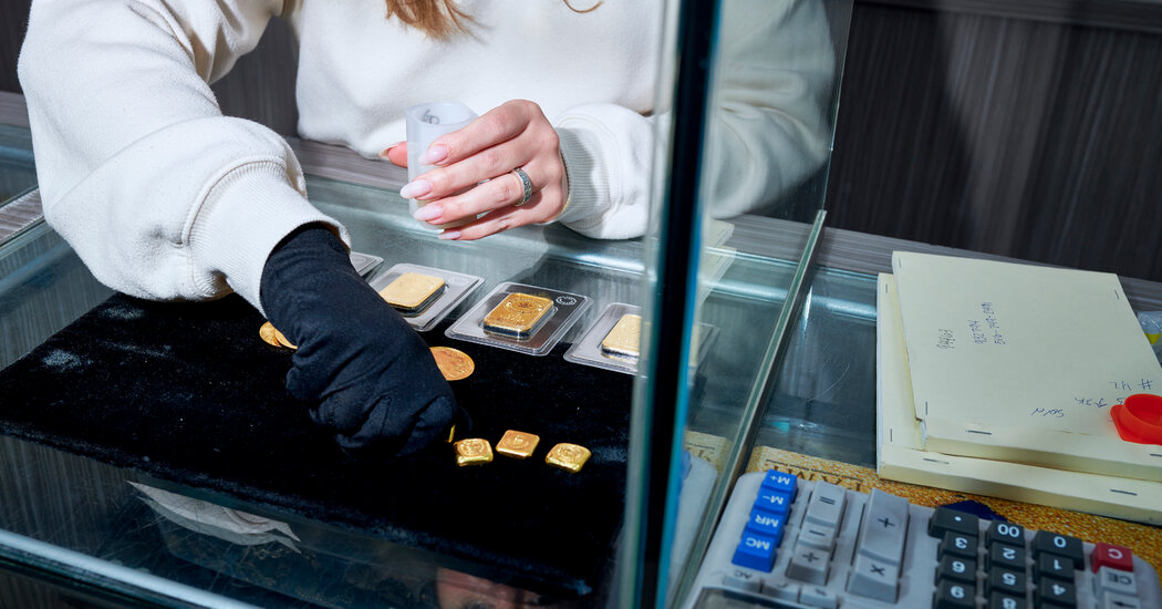 Gold is often sought out by investors as a safe haven during times of turmoil, and the price has risen by about 14 percent this year. By contrast, the S&P 500 index tumbled into a correction on Thursday, falling more than 10 percent over the past month as investors fret about Mr. Trump’s economic agenda.