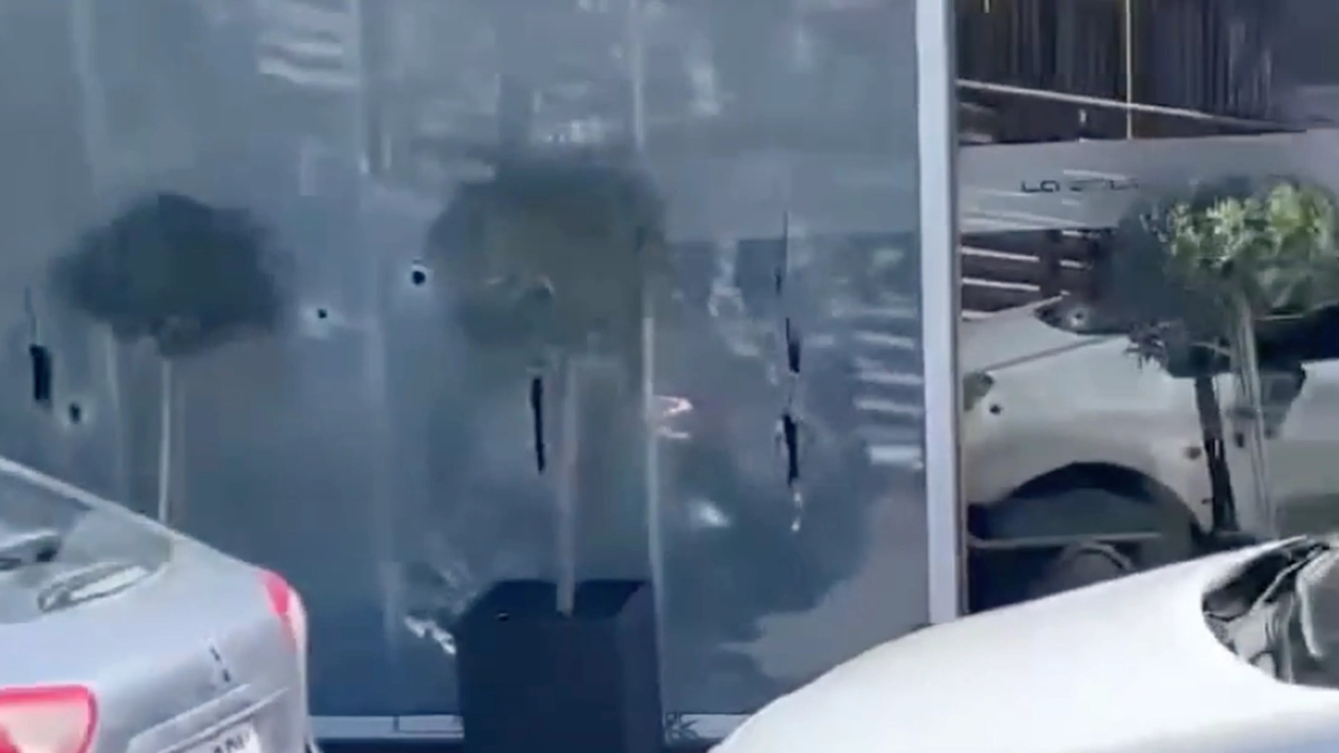 Pictures from the scene show glass all over the floor of the eatery.
