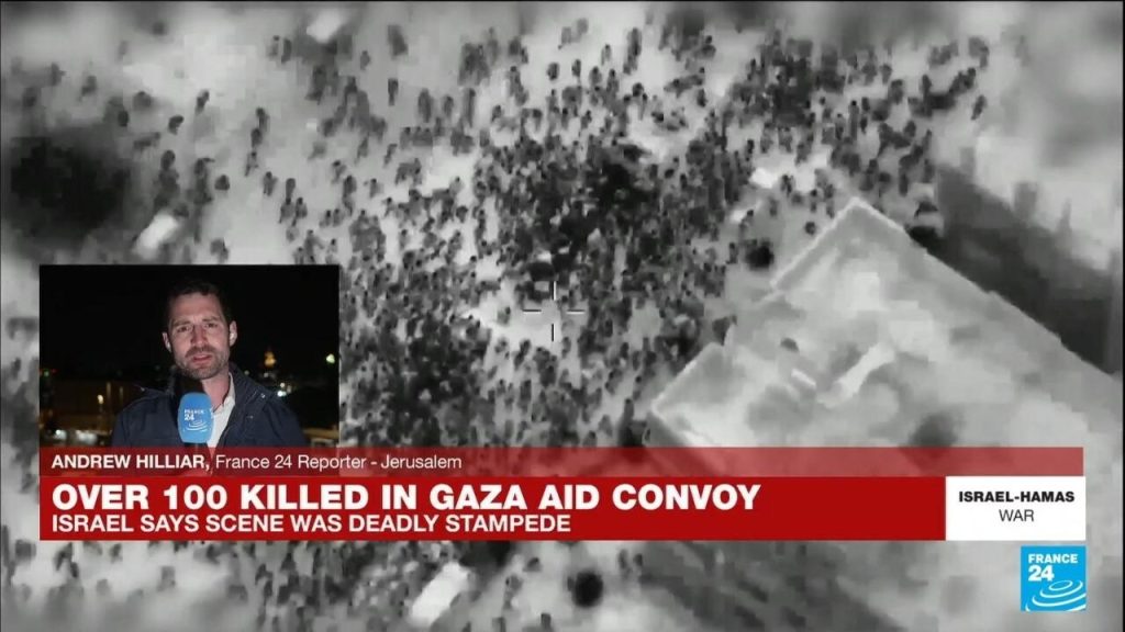 This is a classic situation in which its almost imossible to say with certainty at this stage exactly what happened, said Andrew Hilliar, FRANCE 24’s correspondent in Jerusalem. “Hamas holds Israel entirely responsible for these deaths. The Israeli military for its part, speaks of two incidents: it says that in the first incident, crowds of people rushed towards a convoy of humanitarian aid trucks, surrounding it. It claims that the majority of people died in a stampede”, said Hilliar.