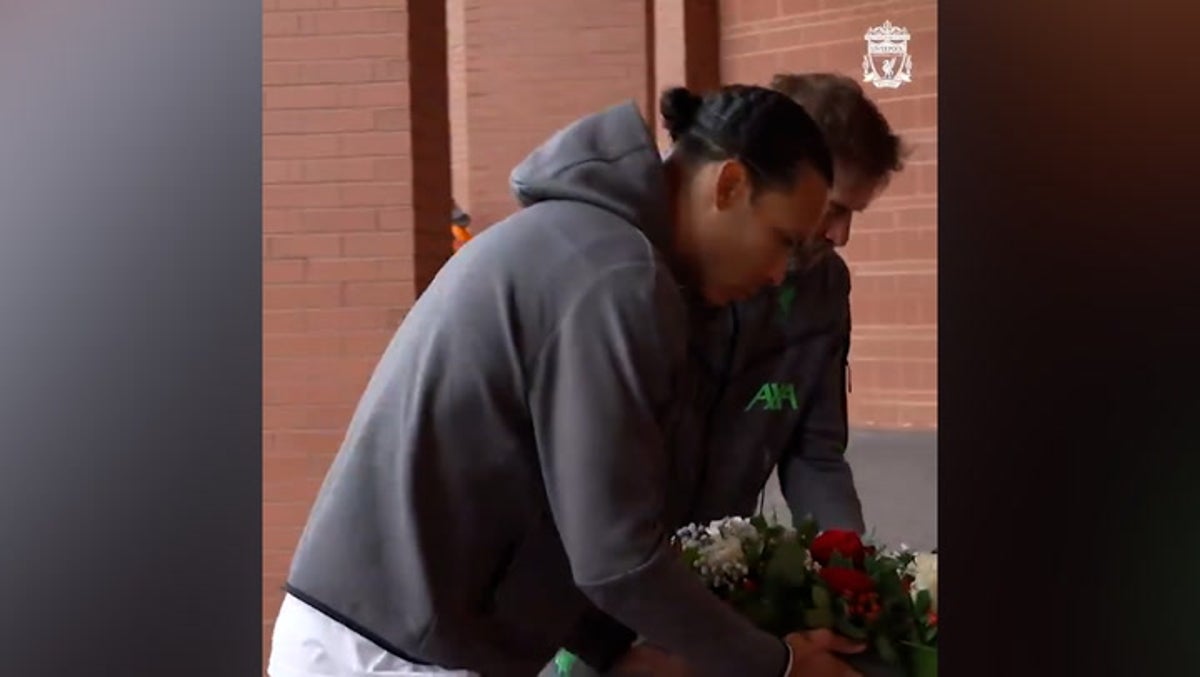 Liverpool’s manager Jurgen Klopp and captain Virgil van Dijk laid wreaths at the Hillsborough Memorial at Anfield on Monday, 15 April, to pay their respects on the 35th anniversary of the tragedy.