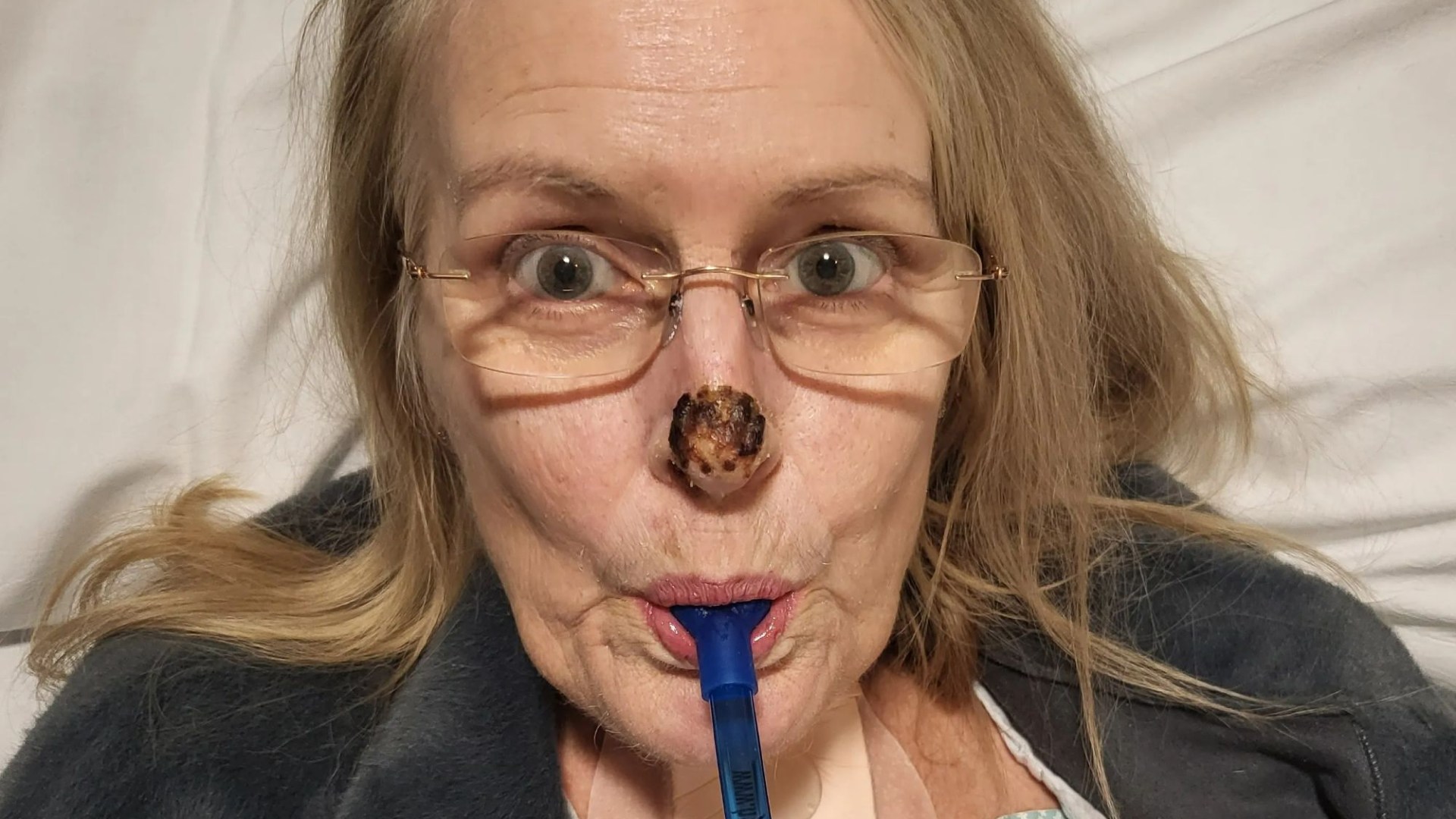 Doctors used antibiotics to stop the spread and although healing, her nose is still ”numb on the end”.