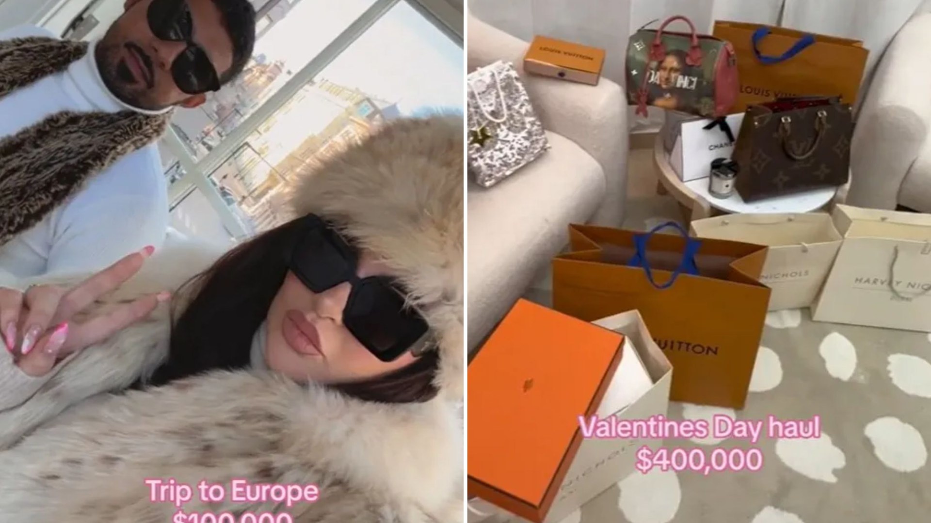 In her videos, she shows off expensive shopping sprees, luxury cars and first-class plane trips around the world.