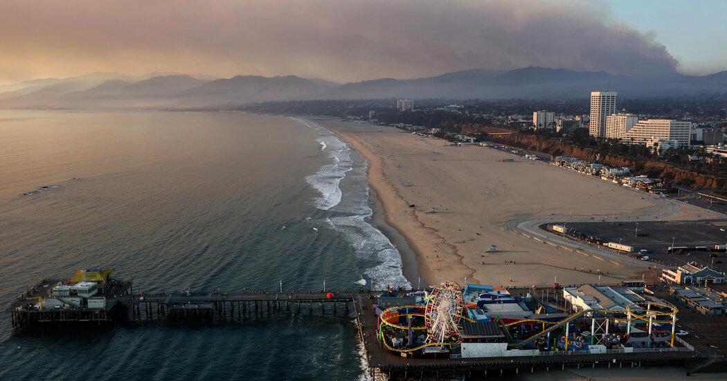 In the middle of one table sat something that has probably never been in the lobby of Shutters before: a portable plastic goldfish tank. “It’s my daughter’s,” said Kevin Fossee, 48. Mr. Fossee and his wife, Olivia Barth, 45, had evacuated to the hotel on Tuesday evening shortly after the fire in the Los Angeles Pacific Palisades area flared up near their home in Malibu.