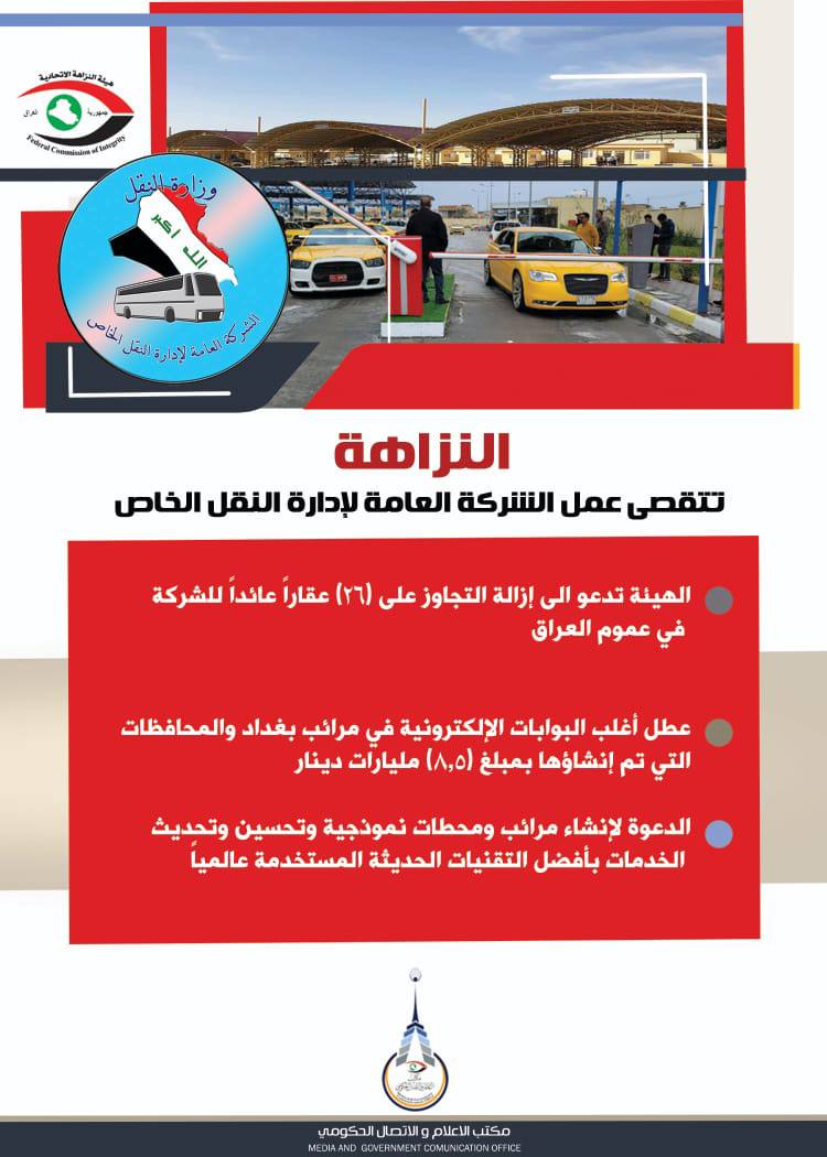 Share Facebook Twitter LinkedIn Pinterest Email Baghdad / NINA / The Federal Integrity Commission urged the General Company for Private Transport Management to remove encroachments on its properties, lands and garages, noting that there are 26 properties belonging to the company that are Source link