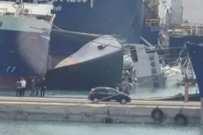 It was being readied for an anti-piracy mission in the Indian Ocean when it took on water while docked in the bay.