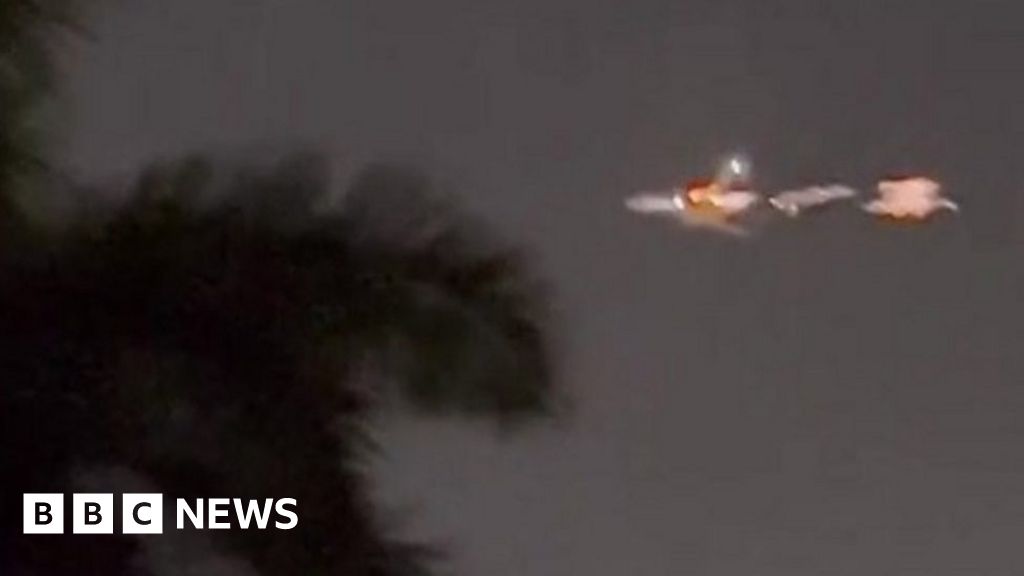 A witness captured the moment the engine on a cargo plane appeared to emit flames before making an emergency landing at Miami International Airport on Thursday.