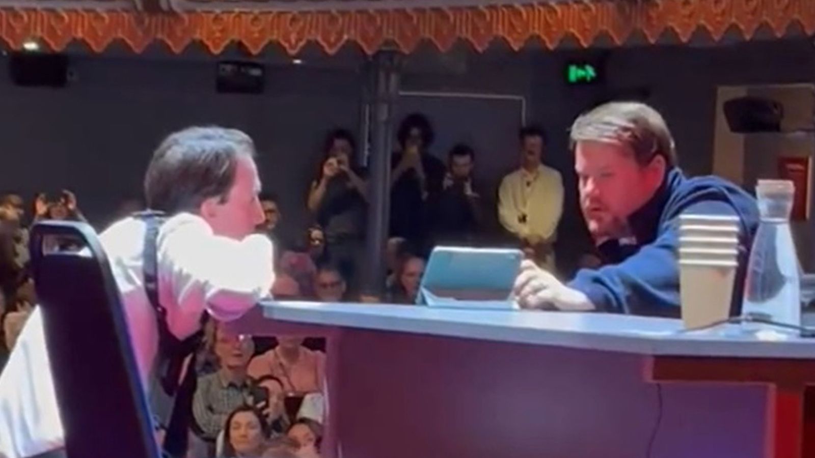 James Corden delayed the start of his West End stage show on Saturday evening to watch the penalty shootout between England and Switzerland with his audience.