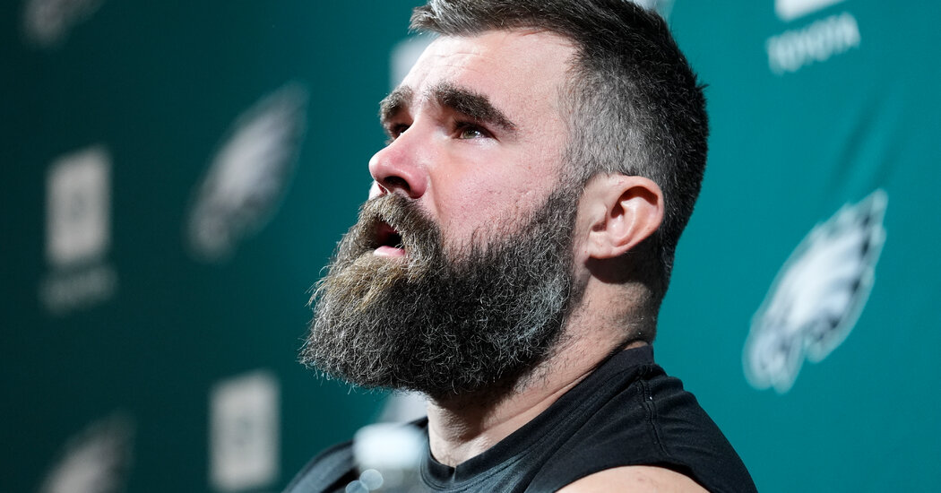 As Jason Kelce strode to a dais on Monday to announce his retirement from the N.F.L. after 13 seasons with the Philadelphia Eagles, he appeared to be playing the role of traditional masculinity to perfection.