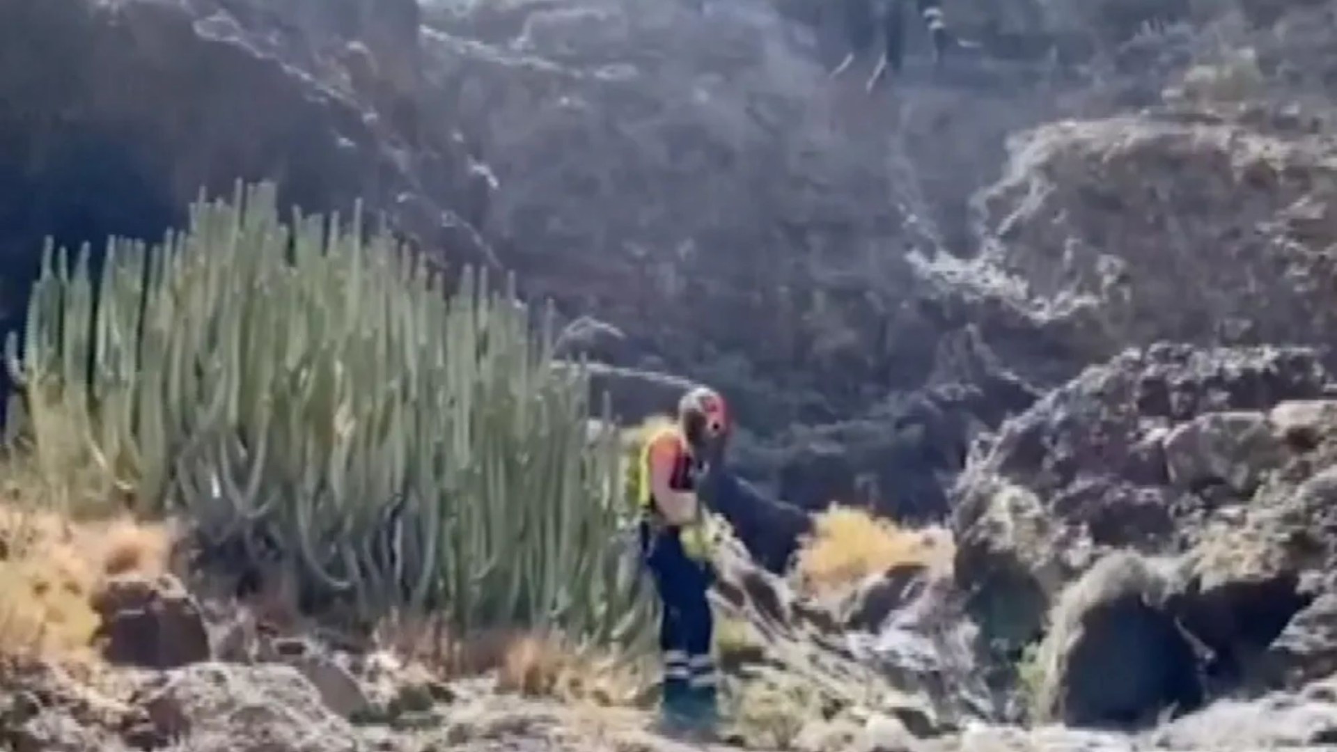 Dramatic footage released from the Tenerife Guardia Civil shows rescue workers using a helicopter to reach an “inaccessible” ravine earlier today.