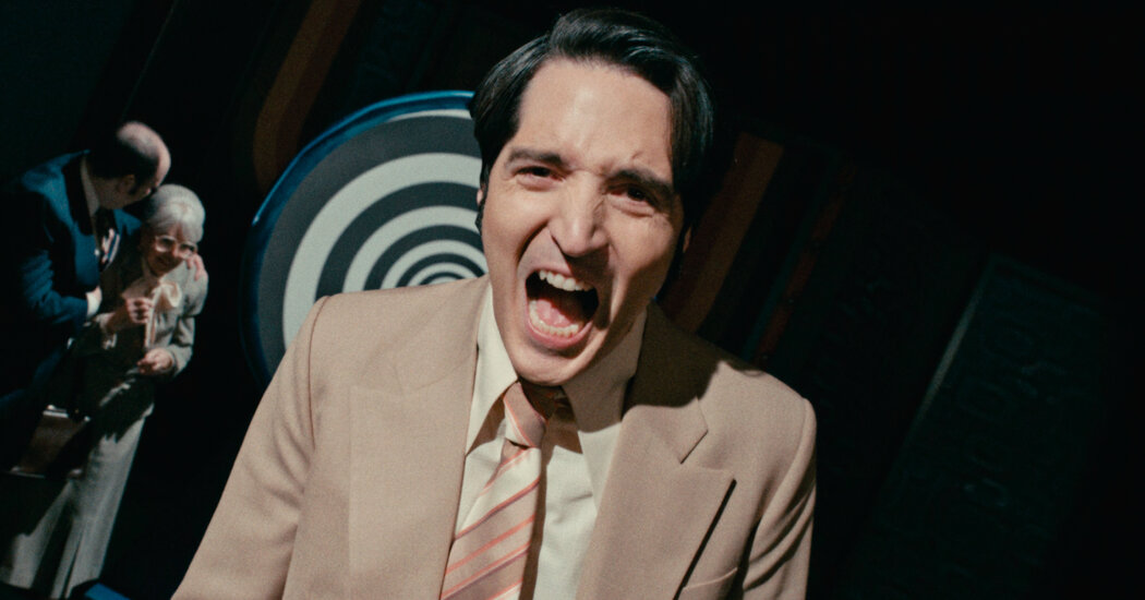 All of these characters seem familiar. Carmichael the Conjurer (Ian Bliss), the film’s abrasive skeptic, seems based on James Randi, who appeared on “The Tonight Show” to debunk others’ claims to paranormal abilities, most notably the illusionist Uri Geller in 1973. Randi also confronted mediums on live TV (such as this film’s Christou, played by a hammy Fayssal Bazzi) and was an outspoken critic of parapsychology.
