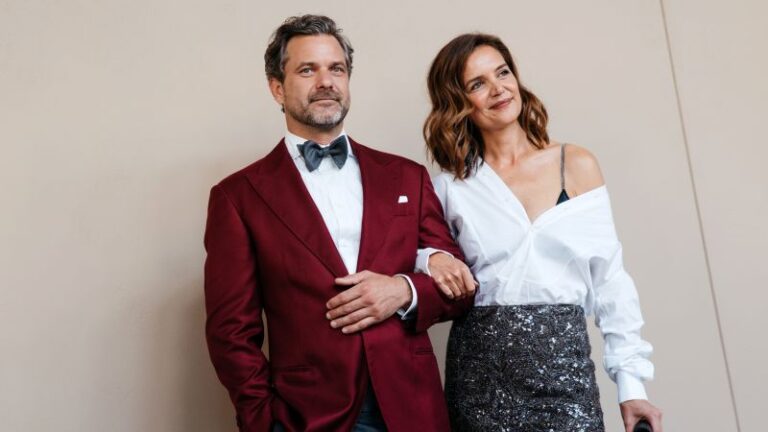 Holmes’ cashmere Khaite bra and bralette moment, which went unexpectedly viral seven years ago, received a red-carpet update this time around, with a white button-down styled off the shoulder, peekaboo strap, and a sequined charcoal skirt. She wore the custom Brunello Cucinelli look to support a film about the Italian designer, “Brunello: The Gracious Visionary,” posing for pictures with Jackson ahead of the event.
